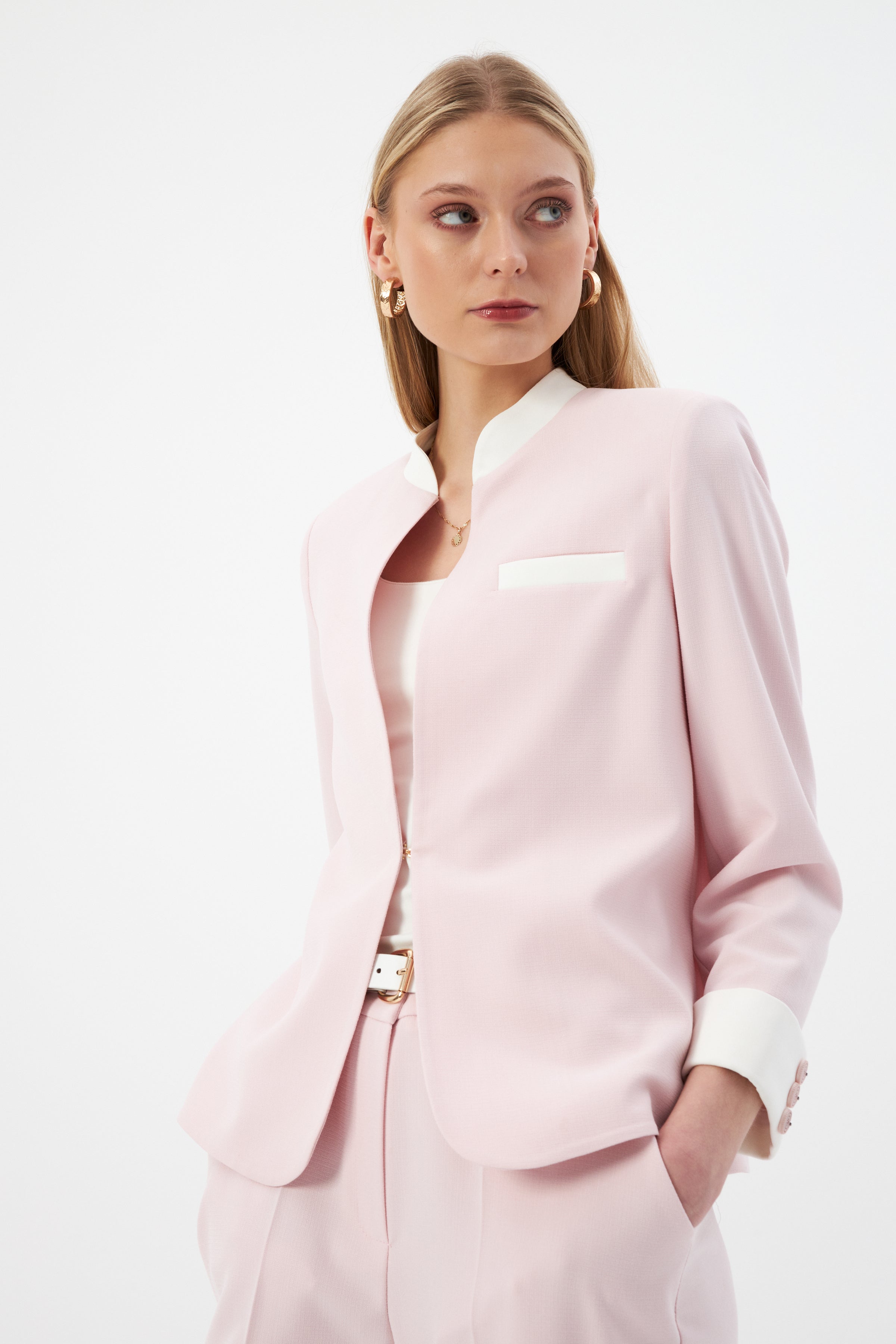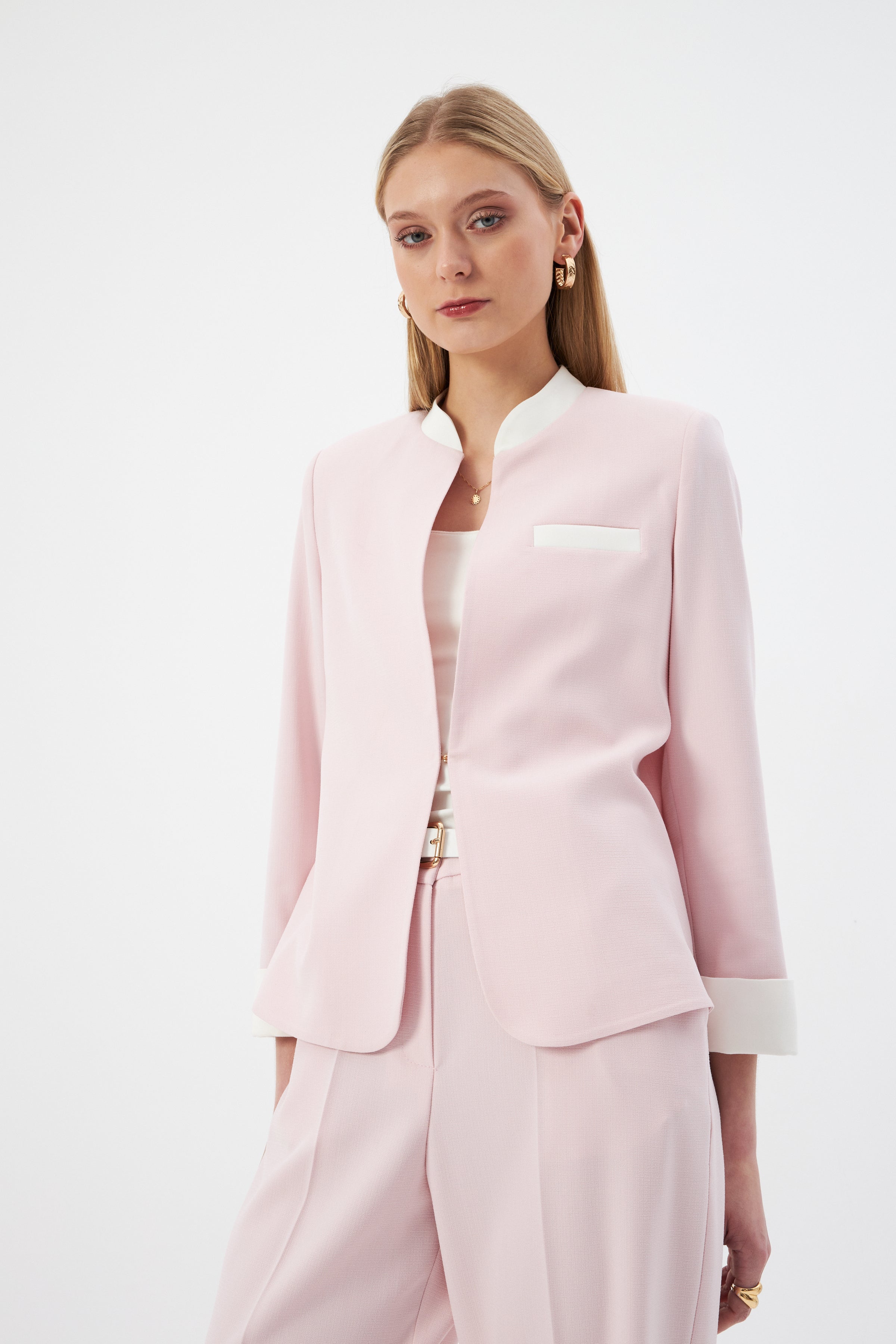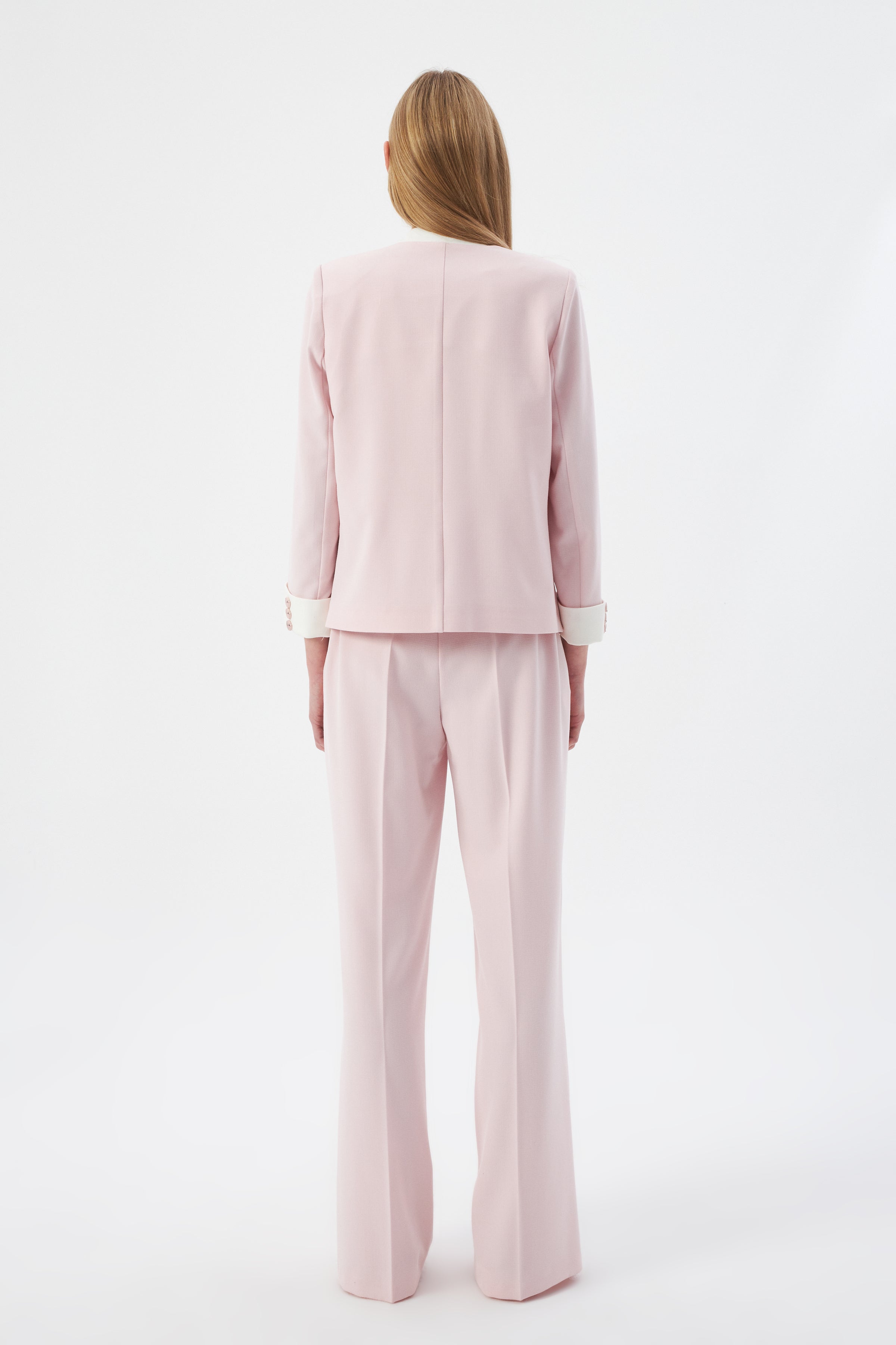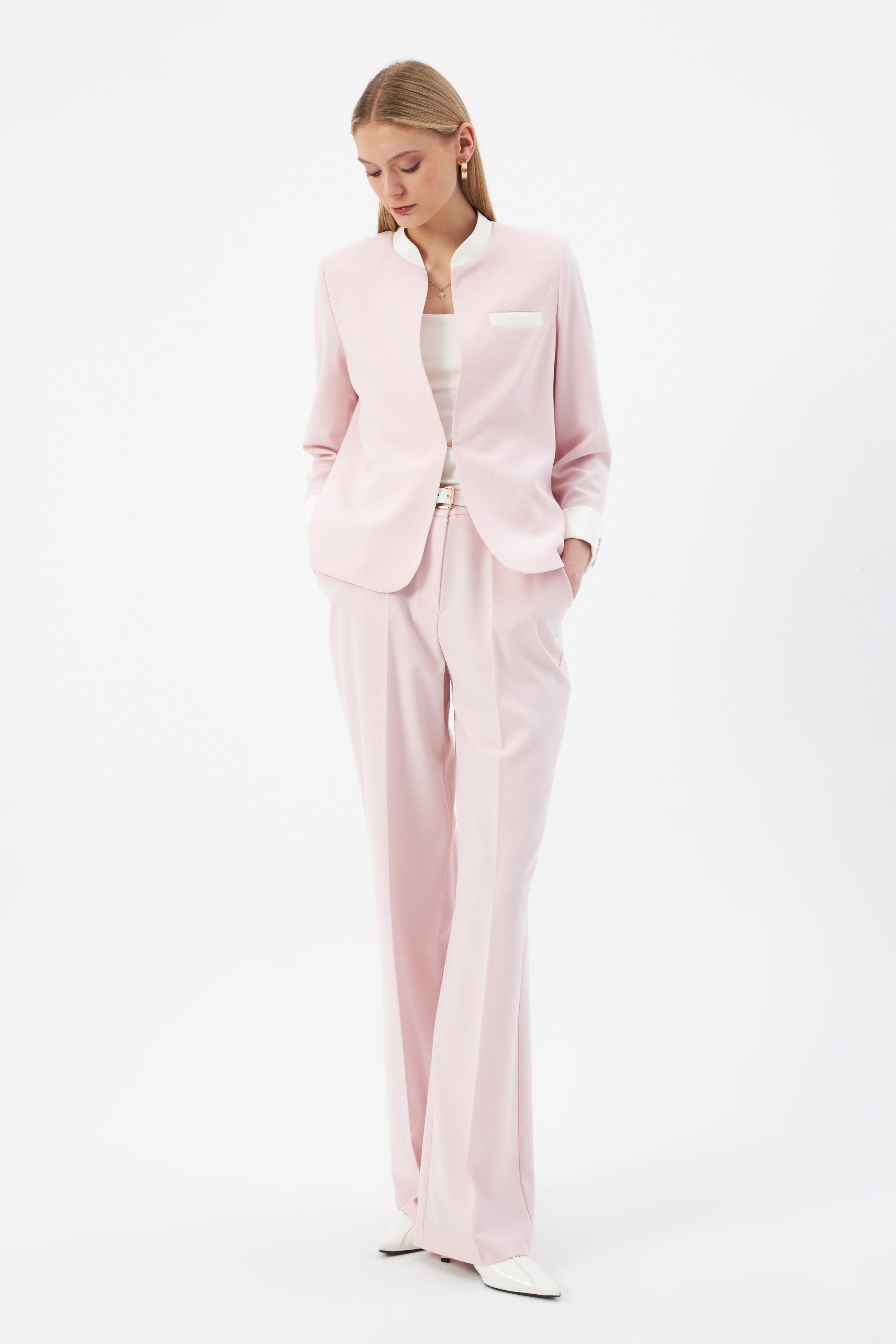 Hakim Yaka Pudra Kadın Blazer ve Bol Paça Pantolon